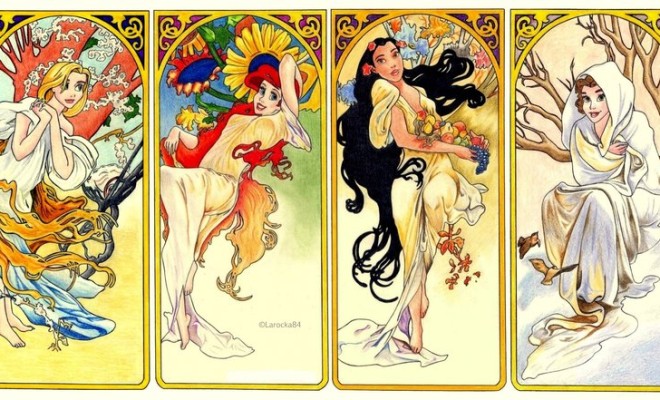 而在現代,最受歡迎的虛擬美女當然就是迪士尼的公主系列囉,沒想到居然有粉絲Larocka84結合了以上兩個美女群的特色,以慕夏著名的四季美女feat.迪士尼公主,創造出了迪士尼x慕夏的四季美女圖!趕快來看看分別是哪位公主代表了四季吧!