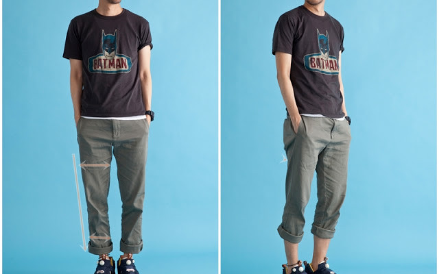 上寬下窄的褲型 (大腿寬,小腿窄),一定是捲褲款的最好發揮的