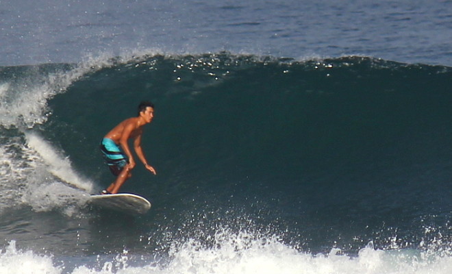 帶著這個心理層面上的進步,我很快的又下了三道很棒又有 size 的浪,而這時太陽也下山船隻來接我們了,收工了以後,這四道浪還是讓我的心情好難平復,有種在做夢一般的不真實感,感覺加起來爽快的程度超越了我以前所衝過的幾百幾千道浪了。回到民宿,吃晚餐,洗澡,一直到睡前都無法停止回味這四道浪的感動,而入睡後我相信我的嘴角一定也是上揚痴痴的在笑,這就是我第一次的船衝經歷,也是我在峇里島的第一次下水衝浪經歷。
