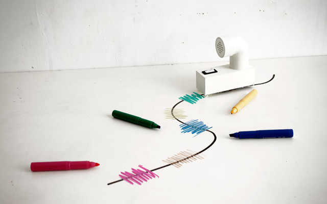 Yuri Suzuki 最近的作品涵蓋了一台迷你機器人,他會沿著黑線走路,並會把手工繪製的彩色電路轉換成聲音,這台機器人的靈感主要來自於色彩追蹤,目前正在盧森堡展出。