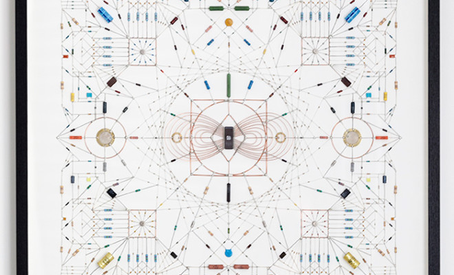 藝術家 Leonardo Ulian 出生在義大利,目前定居於倫敦,在不久之前,他完成了一項新作品叫做”神聖空間”,靈感主要是來自印度教和佛教的象徵,他將無數的電腦零件、電阻、電路等等細小零件焊接在一起成為這個複雜又對稱的曼陀羅裝置藝術。