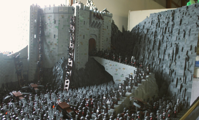 Goel Kim 和 Big J的驚人巨作”聖盔谷之戰”(出自於魔戒),看起來不只是一座模型,這完全是一場樂高之戰,這兩人花了大約一年半的時間架構150,000個樂高積木的透視圖及六個月實際建造,包括2000個迷你樂高人物(其中有不同托爾金種族),整件作品重達400磅,前往 Kim’s Flickr gallery去看他們設計的作品中所有令人驚嘆的細節,包括各種迷你樂高人物和他們迷你的戰爭武器。