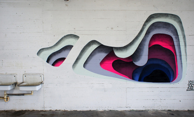 我真的很喜歡這些由藝術家1010所創作的作品,在世俗城市的牆壁上加上色彩的創作,利用色彩的變化讓他看起來具有深層的效果,這位居住於漢堡的藝術家有一系列類似的作品在柏林的藝術展上展出。