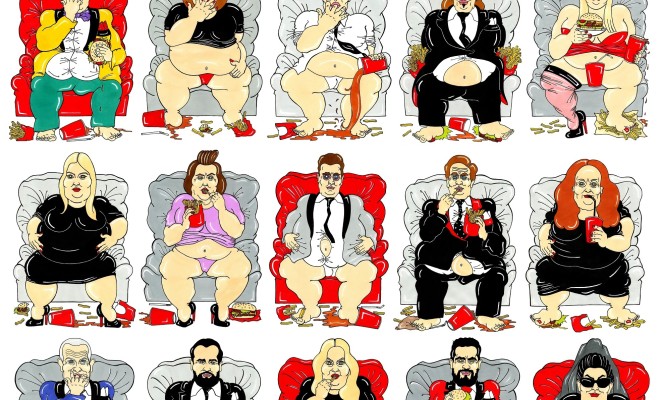 每次在報章雜誌上,總是看到纖細的模特兒們,或是時尚精品們的創意總監們也都是十分纖細,體態總是讓人十分羨慕或是驚訝。而或許也是因為這些纖細的體態,加上之前「時尚老佛爺」Karl Lagerfeld多次對於較為豐滿的人們的不當言論,才讓插畫家AleXsandro Palombo想拿來大做文章,利用插畫將這些時尚界的指標惡搞成愛吃素食並且肥肉縱橫的胖子,以此來諷刺許多時尚界人的人們對於較豐滿的人會出現歧見的看法,利用在插畫之中,將時尚界的禁忌大肆傳播,讓每個人都大腹便便、水桶腰、臃腫不堪,手拿薯條和漢堡。以此替那些感覺被污辱的人們出氣。