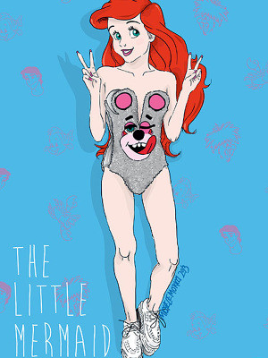 由知名插畫家 Michele Moricci 將九位迪士尼公主依照著 Miley 最近頻頻在媒體前的形象與接近脫序的動作,換成公主可愛的臉龐,更讓可人的公主們做出麥莉 Miley 的瘋狂動作與撩人姿態,灰姑娘扮演 Miley 與 Robin Thicke 熱舞、小美人魚穿上當紅麥莉 Miley 裝,巾幗英雄花木蘭也換上漁網透視裝,這些原本是大家心目中的可人兒公主們,全都在 Michele Moricci 的巧手創意下顛覆了以往形象,看起來相當大膽或許有趣。
