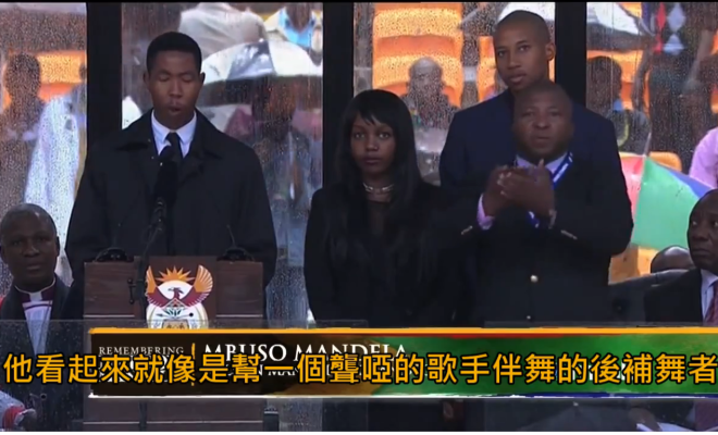 南非偉大的反種族隔離革命家、政治家、慈善家,曼德拉。這位偉大的政治領袖去世的追思會上,有來自各國元首,同時也安排手語譯者,也就是比手語的專員。但事後卻發現這位手語譯者比的根本不是手語!!!