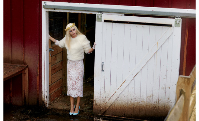 不要懷疑,她就是大家熟悉的米蘭達,明亮的大眼睛卻搭配金色長髮,她在影片中所飾演的角色就是來自匈牙利的義大利女歌手、政治人物、色情演員,伊蘿娜·史特拉。她是個充滿爭議的公眾人物,在精緻的花邊和柔軟質感,透露出了她即將結婚的消息。