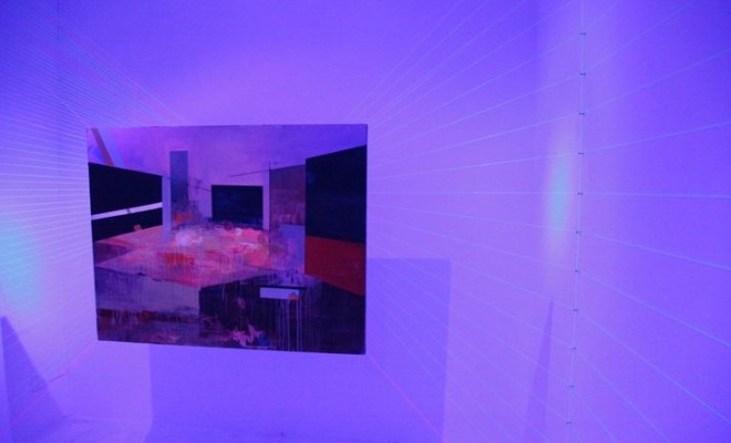 本次展出的《現在的擴張》是張莉雯以同年度(2013年)所創作的平面作品《極限狀態-1 幻空抽離》為基礎所衍生而成的裝置作品。由《極限狀態-1 幻空抽離》中,我們可以看到運用線的切割、面的劃分來達成空間的區隔,混沌與滴流在純粹空間中擴張與穿梭;而《現在的擴張》是運用點的連結、線的交錯來達成空間的重疊,穿透的螢光則為觀者營造出神秘感。