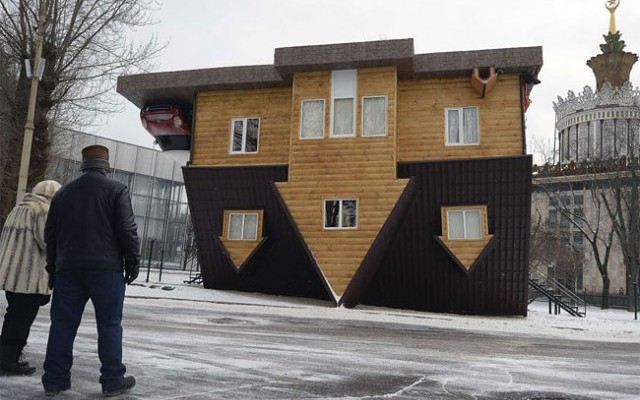全俄展覽中心(All-Russia Exhibition Centre )是莫斯科也是俄羅斯最早、最大的展覽中心,佔地207公頃,內有250 多個雄偉秀麗的各式建築,還有宜人的公園、別致的噴泉及池塘。 二戰前,它被稱為“全蘇農業展覽館”。在這中心內你可發現到有一棟房子上下顛倒了,別懷疑,他絕對不是遇到了什麼天災所導致成這樣,相反的,這真的是一棟故意顛倒的房子,好讓觀光客走進房子後用不同角度看屋內的物品,我們透過底下的照片讓您一窺究竟。