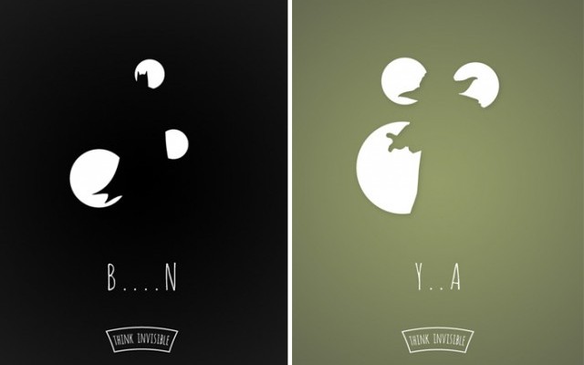 這系列海報作品是在考驗大家的眼力吧!“Think Invisible”可從這<網站>看到更多的相關資訊,但在這之前,讓我們一同腦力激盪一下,猜猜這些海報中的主角是誰吧!