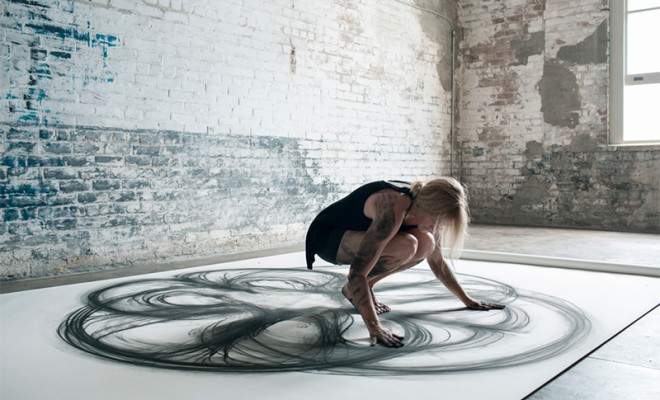 不只是圖像的美,藝術家 Heather Hansen 結合了身體的律動將人體的脈動展現在畫上,精心規劃的路徑,藉由繪畫長久的紀錄身體的舞動。一半舞蹈一半表演藝術,Hansen 將他的所愛完美的搭配在一起,視覺藝術和舞蹈。而不斷出現的對稱圖案會讓人聯想到某種週期或是大自然的循環。