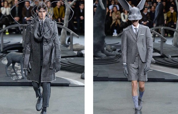 Thom Browne 的 2014 秋冬系列再次呈現不凡的時尚風格。超現實設計,將模特兒化身成為森林裡的各種動物,灰熊,灰兔,蛇,鹿,象等等,奇幻優雅的走出2014秋季味道,夢幻和現實交織成一部森林樂章。