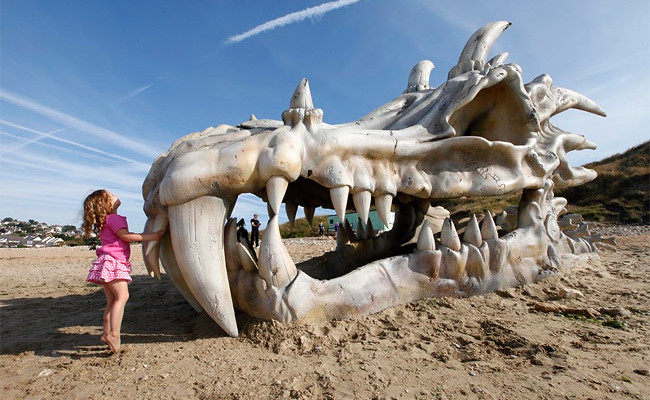 2013年為了慶祝”冰與火之歌:權力遊戲”第三季的到來,他們決定放置一個超大型龍頭骨骸在英國著名侏羅紀海岸沙灘上,如此一來可吸引不少目光,達成一定的宣傳效果!Blinkbox 邀請了三位雕刻家花了兩個月的時間進行設計與製作,這個大骨骸長 12 公尺、寬 2.4 公尺、高 2.7 公尺,工程相當浩大,文章最下方有影片帶你一同了解始末。