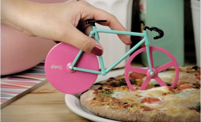 FIXIE PIZZA CUTTER 可不是台腳踏車玩具喔!你仔細看會發現兩個輪子其實是用來切割 Pizza 的呢!這個創意設計讓你和你朋友在星期五 Pizza 狂歡 party 上多了個新鮮感!這產品推出了西瓜色和大黃蜂色,顧名思義是指,綠色粉紅色配和黃色黑色配,這繽紛色彩腳踏車討喜又實用!