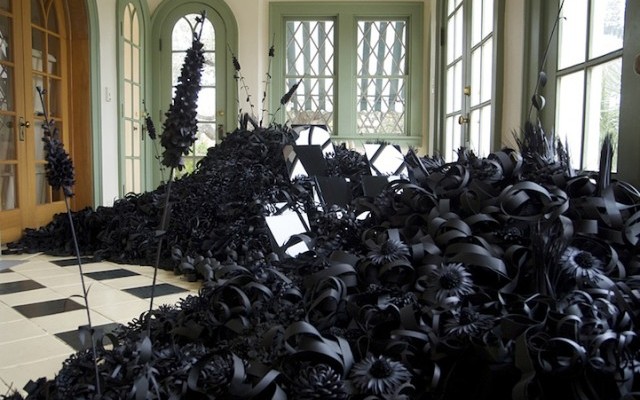 Lauren Fensterstock 是位來自美國的藝術家,她使用大量黑色紙張做出裝置藝術,用折的、用剪的、用拼的,她做出大自然風景樣貌的創作,你可從她的作品中發現花、草、湖泊、山谷等,而這一些真的全部都是用黑色紙張做出來的,畫面充滿詩意又帶有黑色詭譎氛圍,你可從本文中的圖片好好欣賞 Lauren 的鬼斧神工。