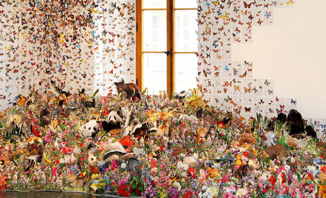 紙藝的大師 Andrea Mastrovito 用他的美術天分搭配剪紙、拼貼、構圖技巧,創作出一個精彩華麗又豐富的小島“The Island of Dr. Mastrovito”。看著這些色彩斑斕的圖片,你覺得是 Andrea 畫的還是拍的呢?其實他是從 1600 本書籍中剪下各種植物、動物及大量的蝴蝶等圖片,有層次有秩序地拼湊出這個神秘小島。