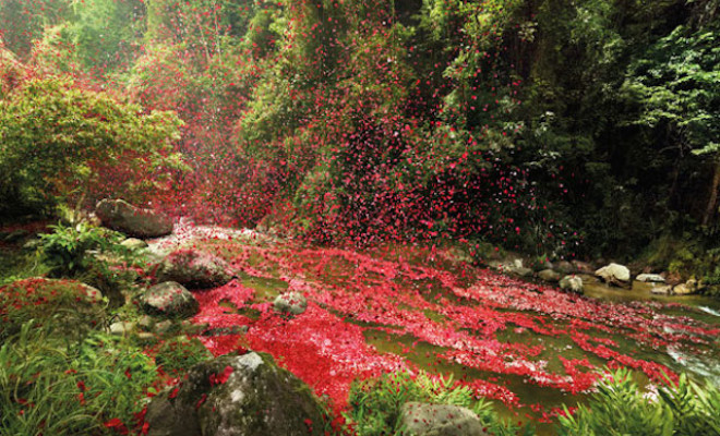 發生什麼事讓整個空氣中瀰漫粉色系花瓣呢?其實這是個廣告手法,Sony 為了推廣 Bravia 系列的電視,砸重金拍攝了這支絢麗的廣告。這支名為“Four Times the Detail”的廣告是由導演 McCann Worldwide 所執導拍攝,他帶領整個工作團隊來到哥斯達黎加火山頂上的小村落,並在村裡拋灑了 800 萬片的花瓣,創造這無與倫比的浪漫景像,同時也強調 Bravia 電視擁有高達 800 萬像素的視覺效果。