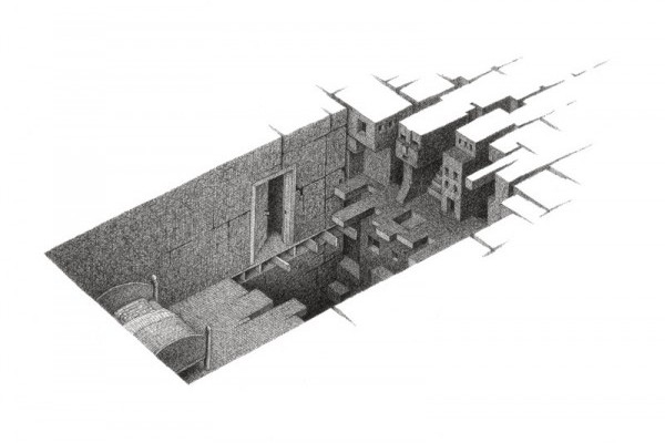 藝術家 Mathew Borrett 幼年時經常在古老的穀倉蓋他心目中幻想的房子,當他蓋出了自己特別喜歡的模樣時,就會將它畫下來並且細緻的描繪內容細節。每張作品中都有一張床,並從床延伸出樓梯和各式各樣的房屋結構,就如同迷宮一般,讓人不禁想仔細看看會通往哪裡。