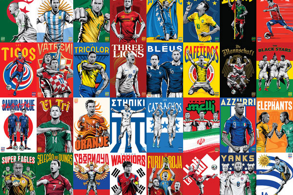 世足要開打嚕!!6月12號,全世界的目光都會聚集在巴西,第20屆的 FIFA 世界盃足球賽就要展開了!每到了這個盛會大家都會聚在一起為喜愛的球隊加油,而 ESPN 找來了巴西的藝術家和平面設計師 Cristiano Siqueira 設計了一系列的海報!將每個國家的特色和精神展現在海報上。