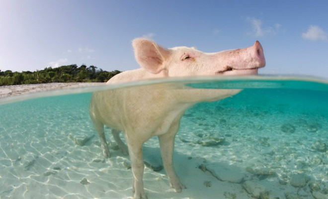 位於中美洲島國巴哈馬的「豬島」(名 Pig Beach、Pig Island 或正式 Big Major Cay),是一個著名的游泳勝地,那裏最大的特色,就是有一群豬不怕人,會跟泳客一同游水!為甚麼會有這麼一群豬呢?傳說有幾個,例如不少人相信是很久前一群水手把豬留在島上,當作後備食糧,怎料一去不復返,豬群透過往來船隻丟棄的食物而存活下來。另有傳言指牠們是沉船意外的生還者,又或從其他小島游過來,甚至只是巴哈馬的觀光宣傳策略。