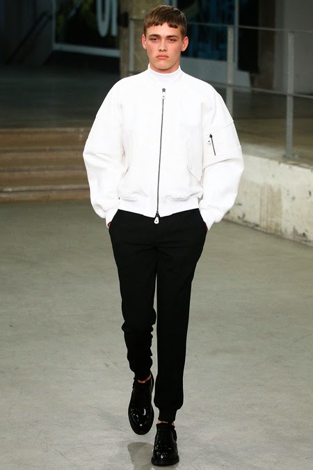 (Carven 15SS 圖片擷取自 style.com,呼應白色風潮的 MA-1 搭配黑褲就是最極簡有力的風景。)