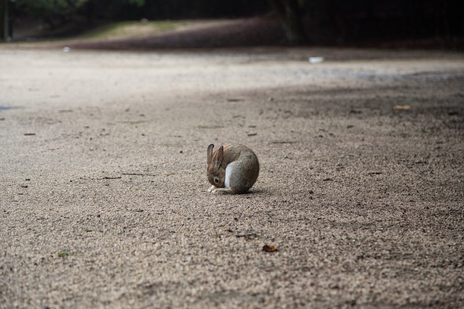 然而,群眾是熱鬧的,結束宴席後的內心是孤獨的。曾經好多次, 感到迷惘,在散會以後不知道該停留在哪一個團體當中。不過,在日本大久野島拍攝到這張作品的當下,也讓自己獲得了新的啟發:其實在照片的框架外,四周都是兔子,並不像畫面中看到的如此孤寂;其中的兔主角,僅僅是為自己理毛,不成群結伴,不在乎別兔,就是專注地面對自己;幾乎成正圓形的姿態,宛如優美的零, 象徵一切的開始與起點;又像太極,萬物皆在循環的脈絡當中。