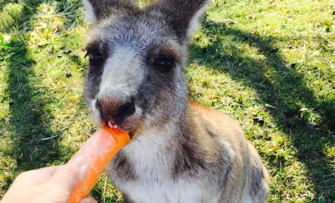 Morisset Park 的袋鼠們很熱情,當你一抵達,牠們就會熱情地奔向你討食物,可愛的模樣,讓你整個合不攏嘴,帶一些紅蘿蔔給牠們,牠們還會拿手手握住蘿蔔,就直接在你面前豪放地吃了起來,並不像多數的動物,叼了食物就跑不見,這時候你就能盡情地摸摸牠們,軟呼呼又萌萌的模樣,可是在台灣絕對體會不到的特別體驗!
