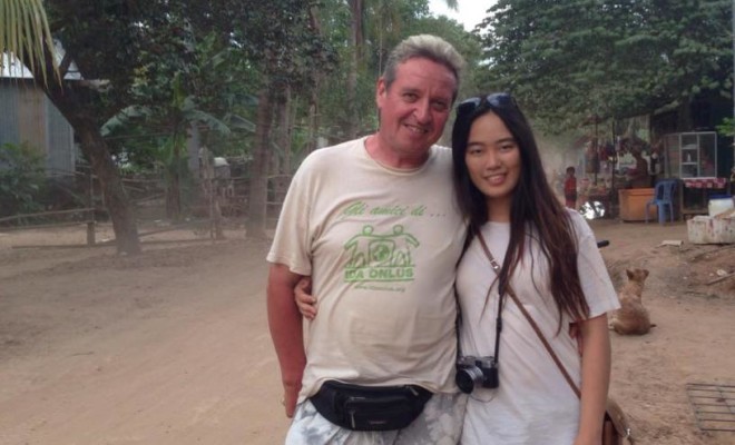 終於和 Igino 見面是我們持續通信了兩個月後,他騎車來我的 hostel 載我去和他朋友們吃飯,我在晚餐中見到另外一個義大利女生 Jessica,她在義大利讀新聞採訪,因此有這個機會來柬埔寨幫組織做專訪,她剛剛才完成在尼泊爾的專訪計劃就飛來了,我在她身上看到了有別於一般女生氣質與智慧;而另外一個義大利大叔 Jon Carlos 是 Igino 多年的好友,退休後特地來幫忙學校。
