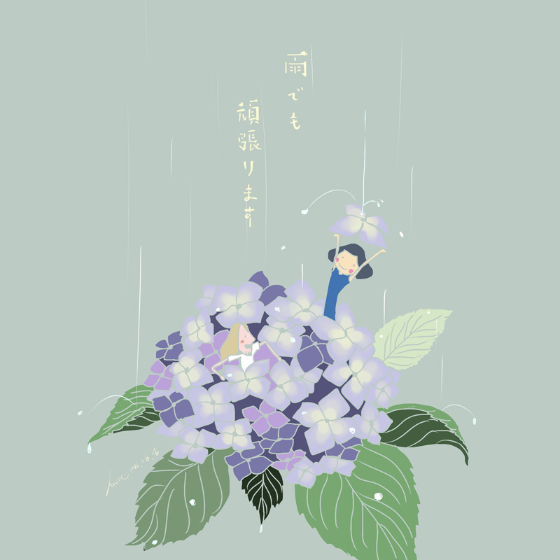 源於去年五月連日陰雨,有感而發,想起夏天的京都市裡處處可見的、垂著水珠的繡球花。