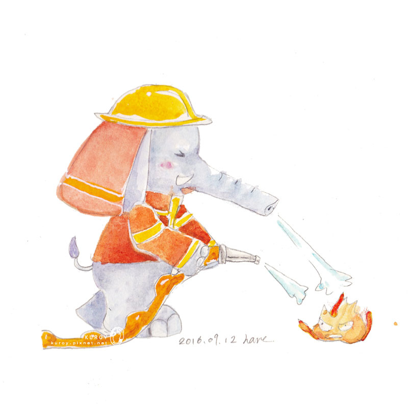 Roy 出題我來畫,第 4 天: 消防員象 / 消防士の象 / Brandelefant