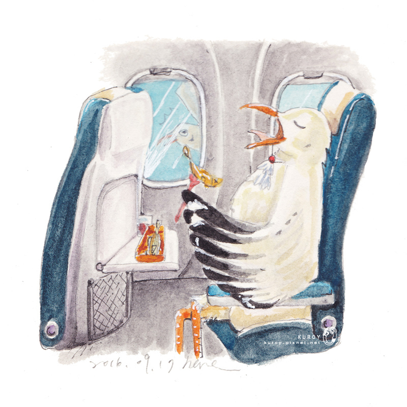 Roy 出題我來畫,第 8 天: 坐飛機的海鷗 / 飛行機に乗っているカモメ / flygande fiskmås