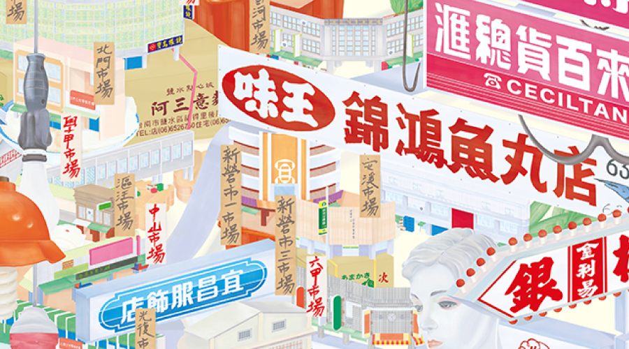 剛剛出版台南插畫圖文書「台南生活自由式」的湯士賢,去年初收到一封來自市政府的信件,邀請他一同參與地圖摺頁專案,其中包括市場、水域、動物友善、露營、風獅爺及老屋等六種關於台南的地圖,他挑選其中最草根的菜市場主題,開始了大台南的市場之旅。