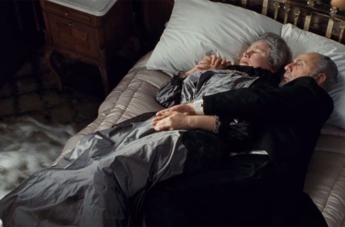 若問在生命的最後關頭,有什麼能使人鼓起勇氣面對死亡,那大概就是與摯愛相依偎、共享最後的溫存了。在輪船沉沒的幾幕中,一對老夫妻躺在床上緊緊相擁,一起看著大水漫進艙房,靜待與彼此相伴而亡。雖然畫面只有短短一瞬,卻感動了無數影迷。