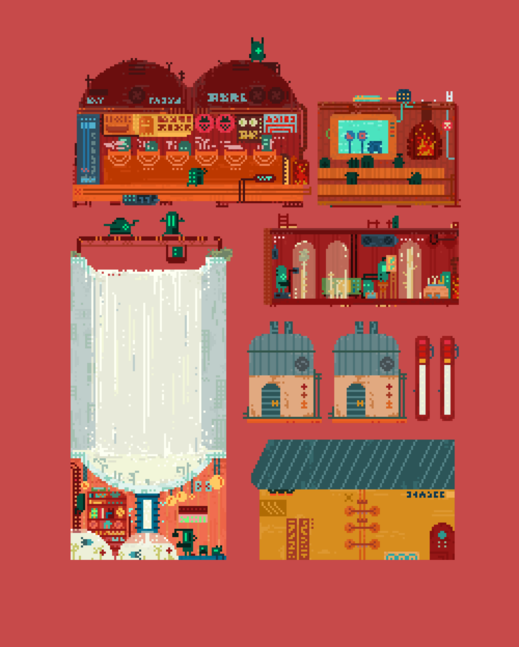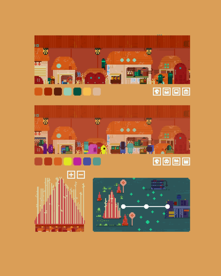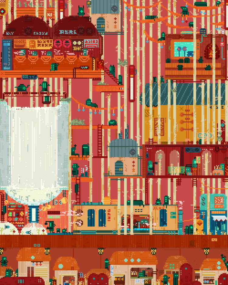 用像素建構末日後的世界,紀錄不同機械族群的生活聚落
