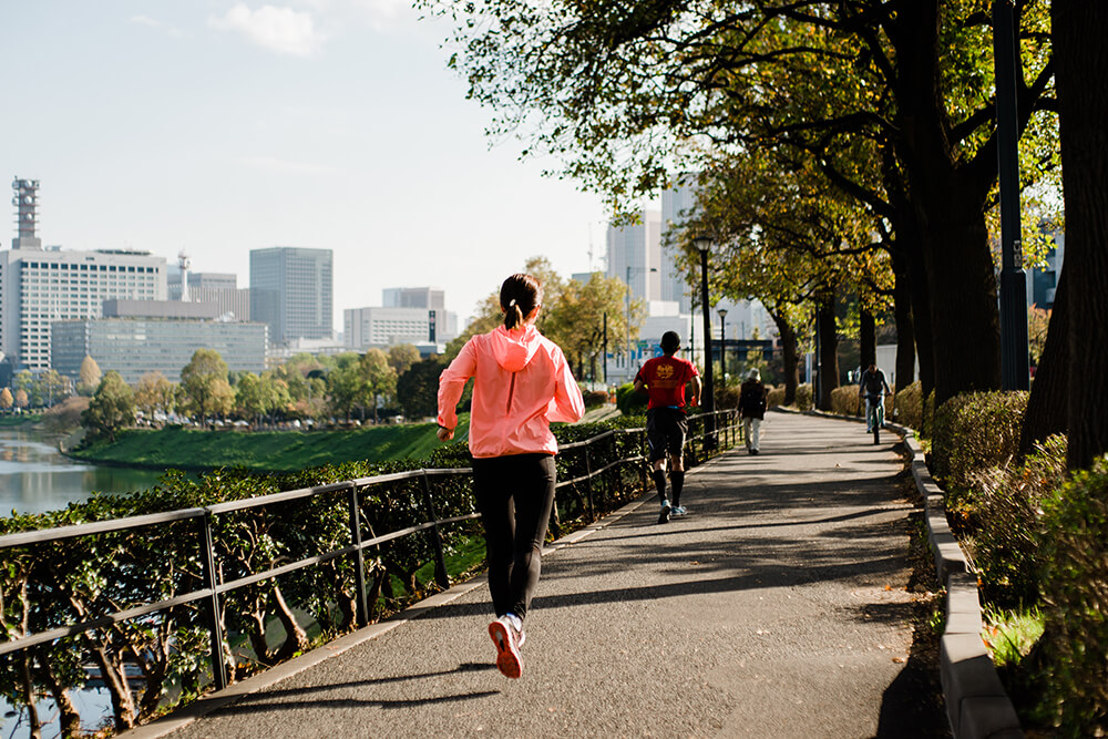 半個月來,並沒有太劇烈的改變,時常感到雙腳使不上力,只是和一開始相比「想要放棄」的念頭越來越模糊。我慢慢發現,速度開始提升,自己可以多跑 15 分鐘,本來因為距離拉長而游移的專注力也變得堅定。一個月後室友再次邀請我一起跑步,我們來到被稱為跑者聖地的皇居,繞著外圍 5 公里慢跑一圈,即便很快我就看不到對方的身影,但在自己的節奏上,我感到步伐恣意,緊促的呼吸聲卻沒有變得混雜,「完賽」的那一刻心裡很是激動,就算肌肉是緊繃的、汗水淋漓,但思緒是穩定的,不斷回想著 —— 這是我自己一步一步跑出來的。