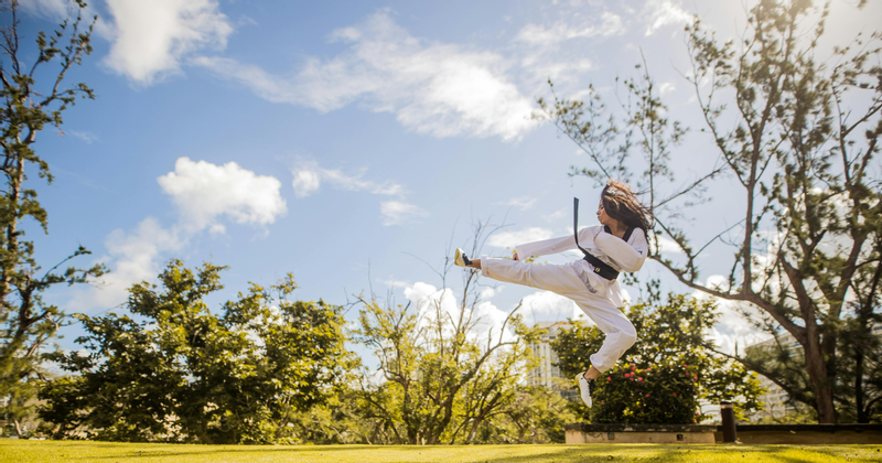 中午不午睡,去社團練習; 下課為了比賽繼續練; 假日清晨五點起床,六點準時到道館 晨跑一到兩小時,吃完早餐,再回道館練上好幾個小時
