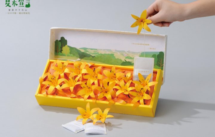 「夏末萱言 」為花蓮富里六十石山的農產品牌,設計宗旨是將包裝與美景結合,彷彿置身在遼闊的縱谷風情與滿山遍野的金針花,品味六十石山產品風味之餘,也一覽當地美麗風情。