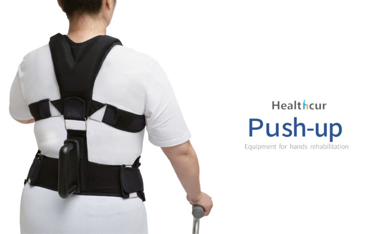 利用穿戴的配備來改變行走復健的形式,幫助者可清楚知道提拉位置且好操作,相對原本方式更有效果;復健者的舒適感提高,且在背部的區塊可引導行走的正確姿勢(抬頭挺胸)。