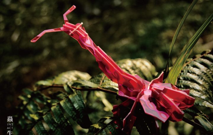 蟲生拼圖,一款結合平面拼圖與立體模型的生物玩具,以昆蟲生態中,築巢(棕頸捲葉象鼻蟲、推糞金龜)避敵(大蝗蟲、魔目夜蛾)擬態(竹節蟲)等生命行為為主題,希望透過平面轉變至立體模型的組裝過程,加上背板的插圖故事,讓大眾更認識這些小鄰居們。