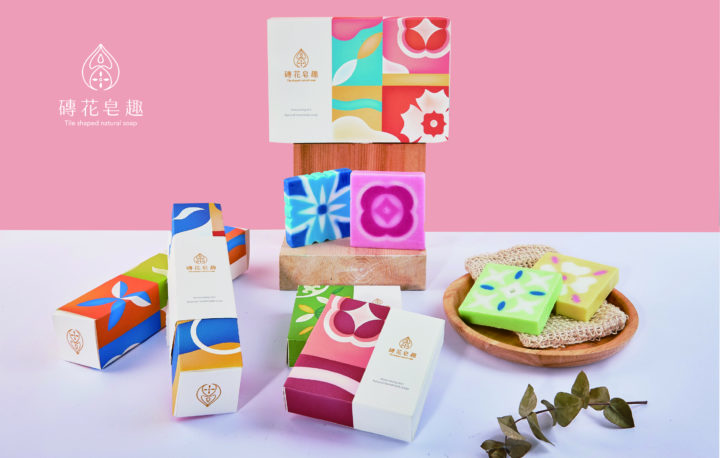 磚花皂趣,洗臉皂隨著使用時間的不斷縮小,就如同瀕臨消失的花磚一樣,我們應從生活周遭 開始做起,為每一片具有意義的花磚,留一個美好的生存空間。品牌名稱的動機為每一個具有 意義的房屋在時間中成為歷史悠久的建築,每一個角落創造出許多不同的趣味故事。