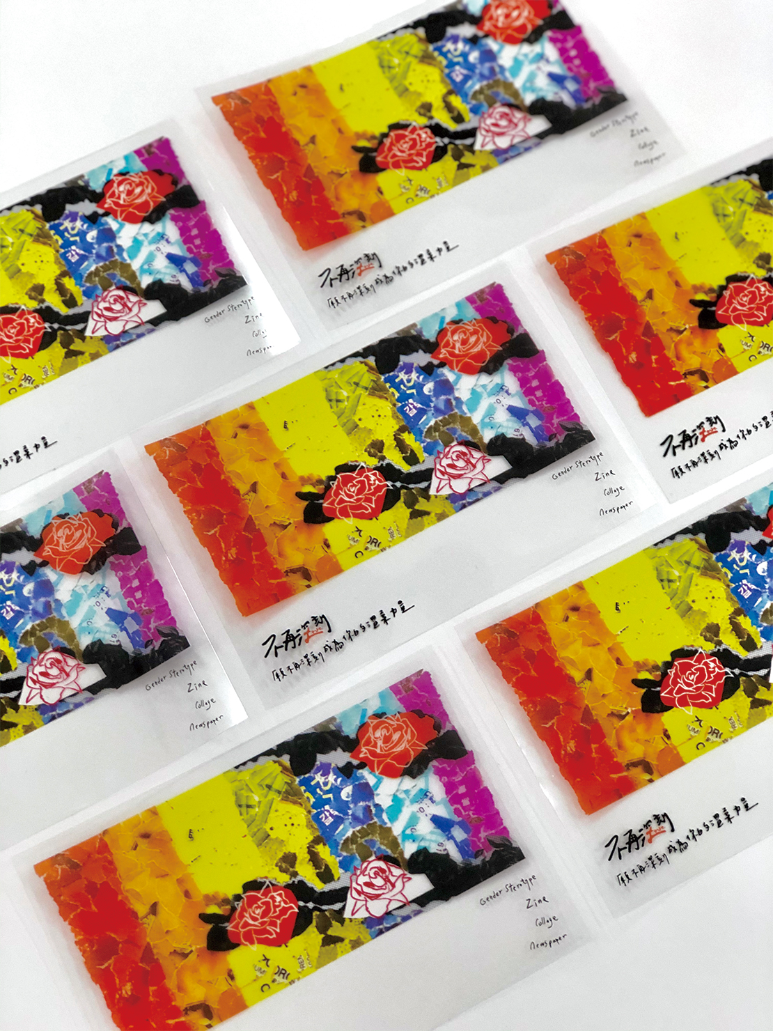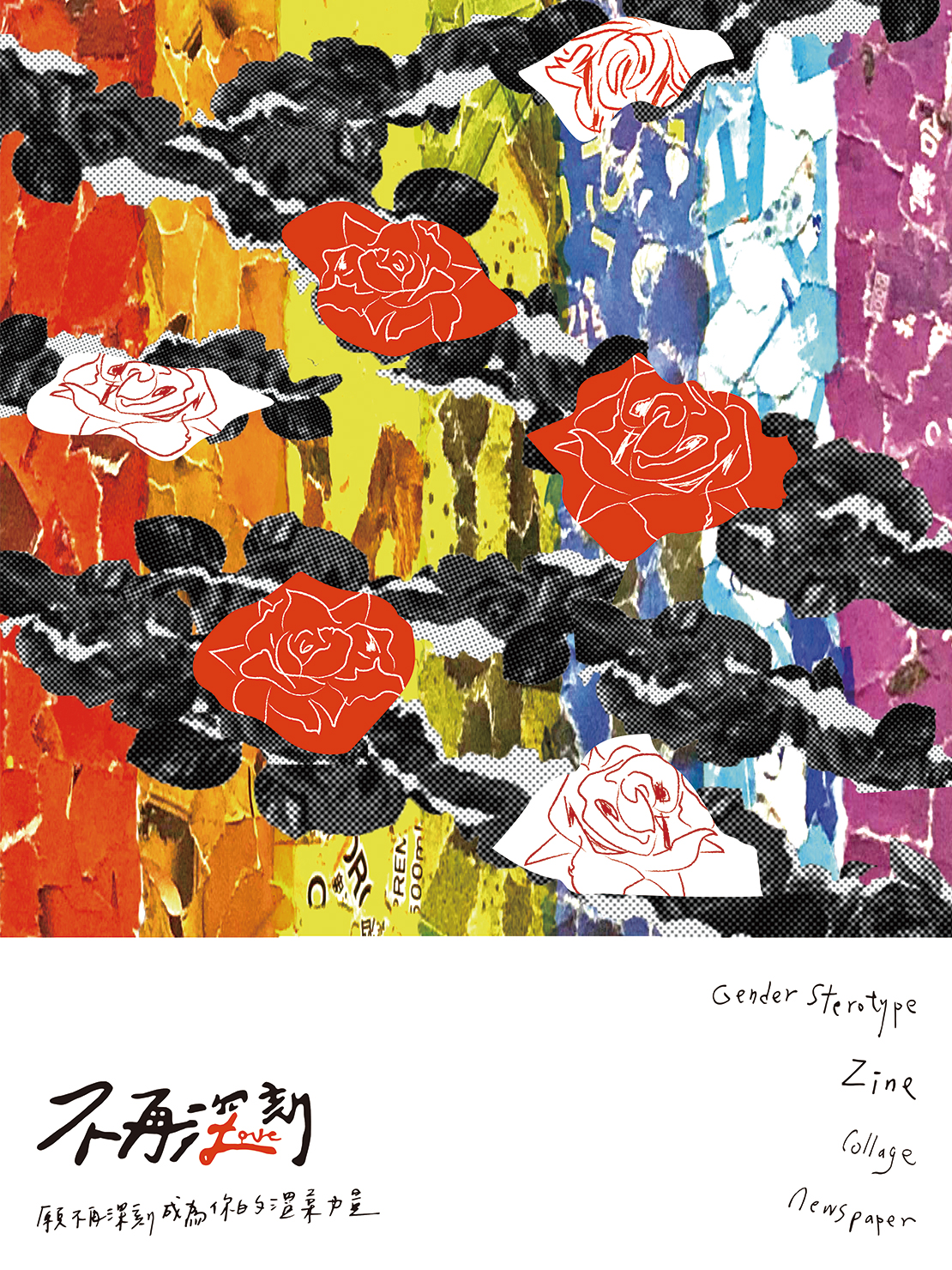 在刻板印象社會中,男生要陽剛、女生要溫柔,同志不正常。我們藉由拼貼藝術去呈現我們的理念,每個人都是獨立的、特別的,就像這些素材一樣,單一看似薄弱,拼起來卻成為另一幅美麗的畫,這也是我們想告訴大家的,不用去害怕自己是孤獨的,你就是一個最特別的存在。