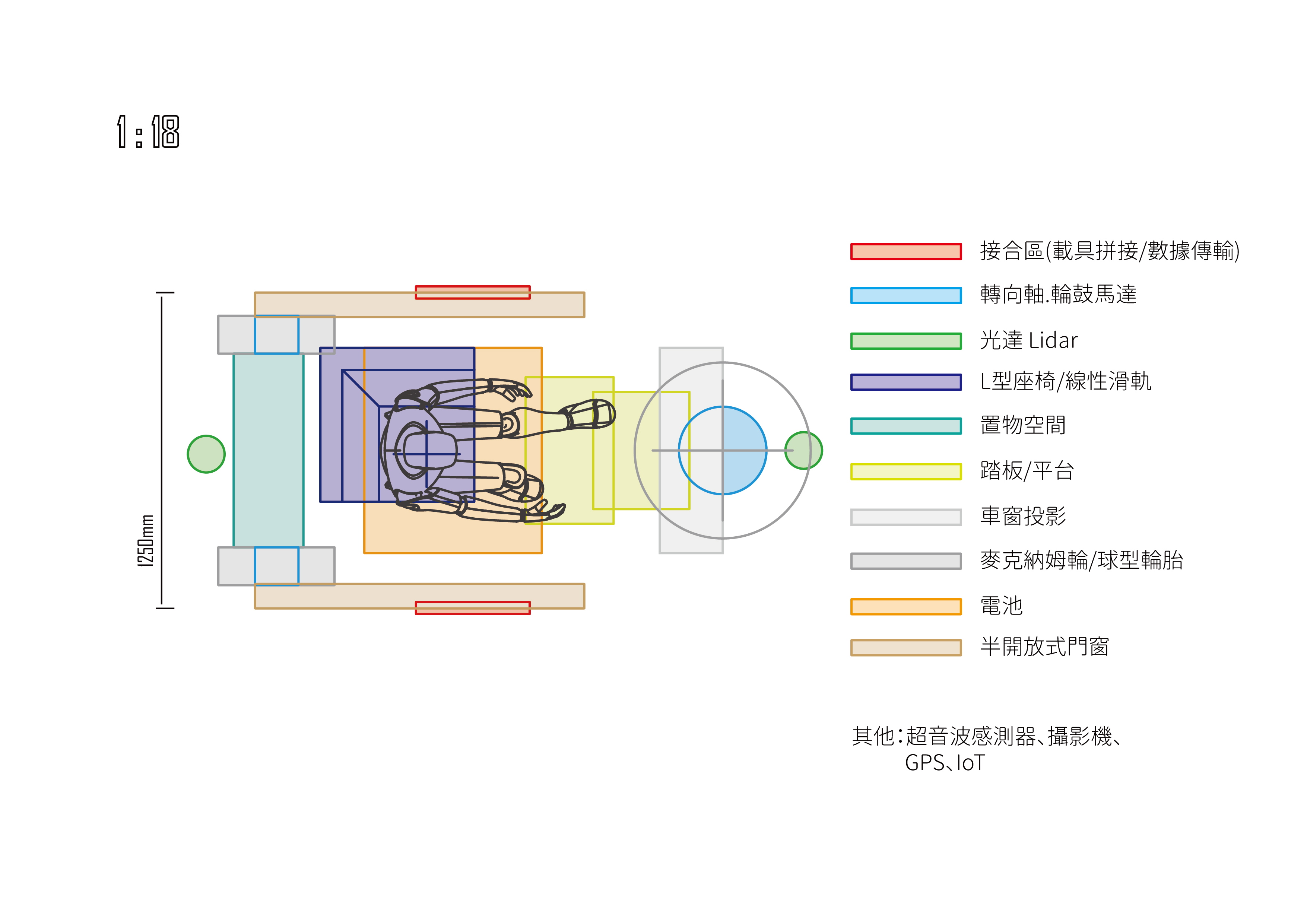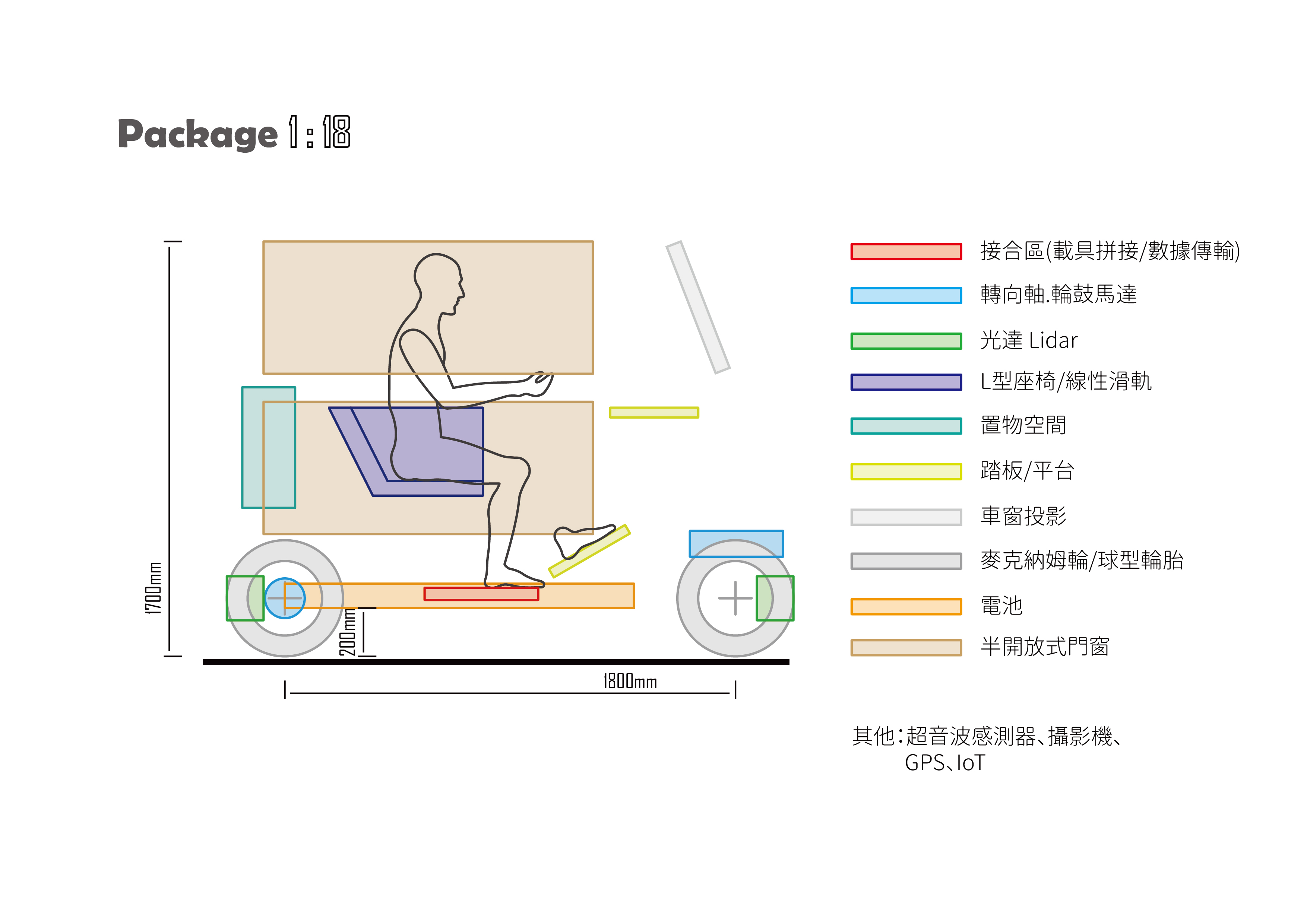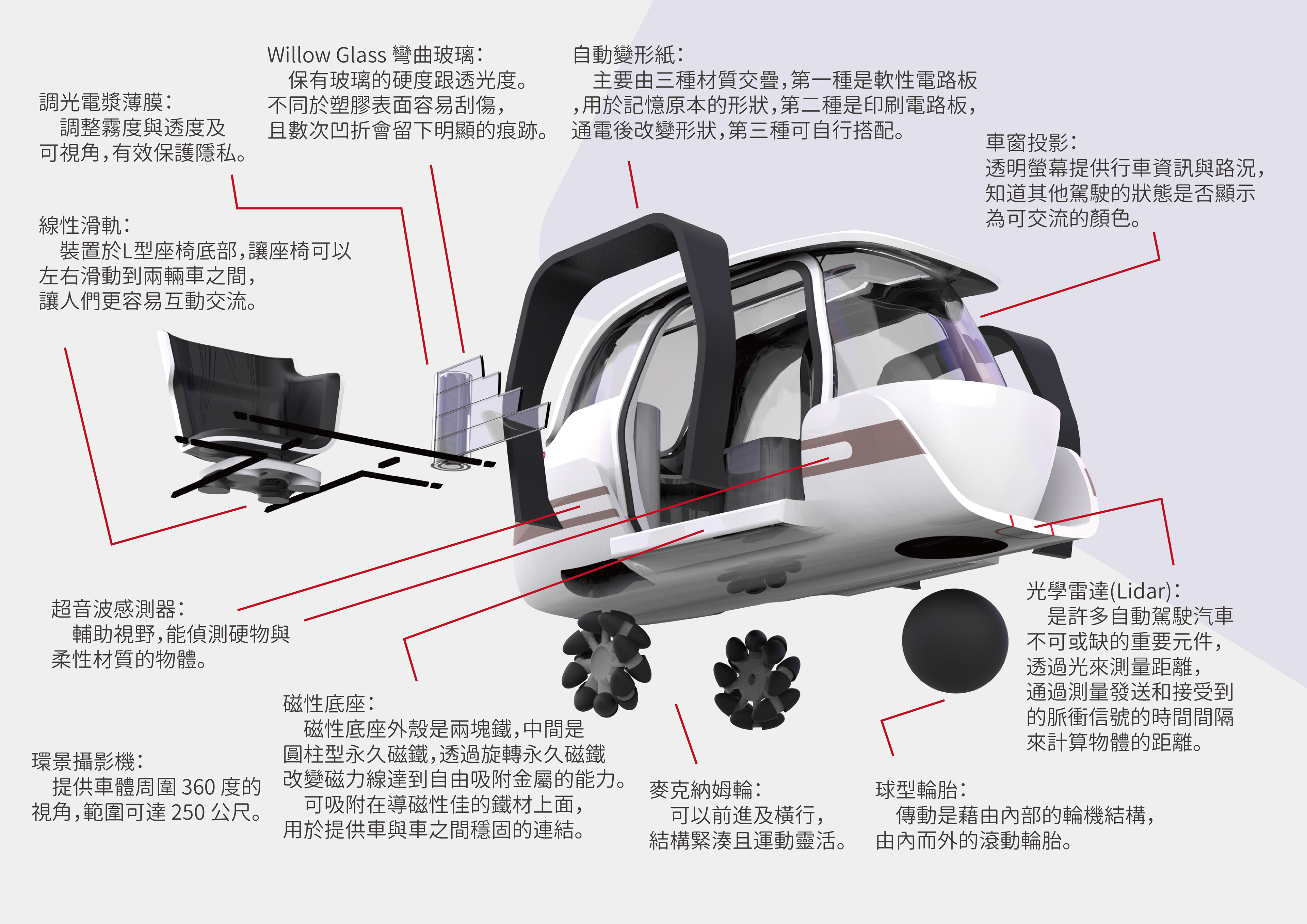 這台載具的發想是來自我們對未來的想像,當自動駕駛普及之後,人們不用再無時無刻的專注在駕駛上,我們將擁有更多的時間,分配做別的事情,利用這段省下的時間,與其他人戶動交流。