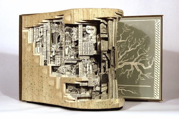 看得出來這些雕刻作品是古書、地圖、百科全書、課本、漫畫等書籍嗎?經過 Brian Dettmer 的精雕細琢, ……