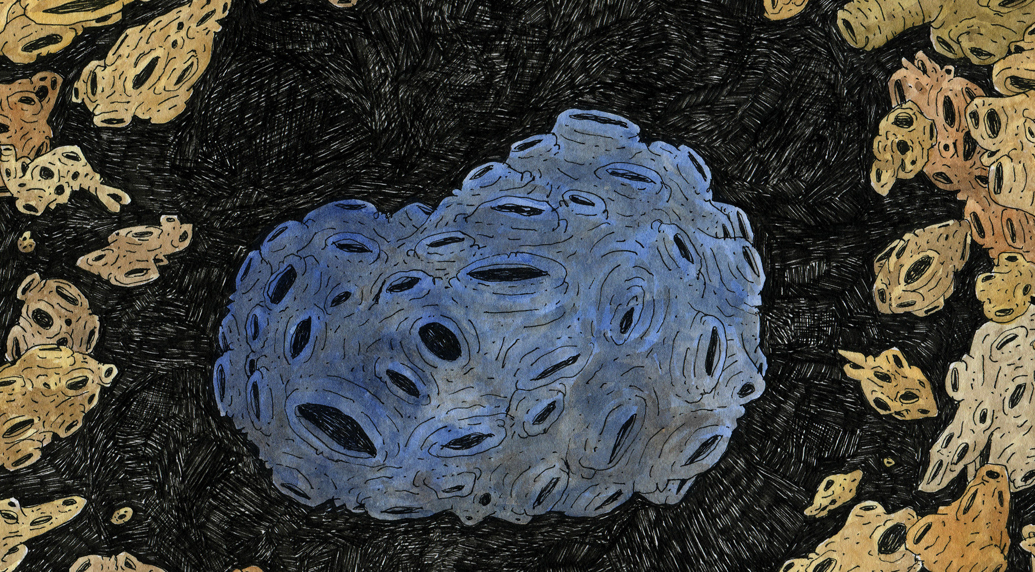 綠色的殘骸飄著 而它是小行星,它單身。 小行星很寂寞。 但有一天,它終於認識了新朋友 小行星戀愛惹。 小行星 ……