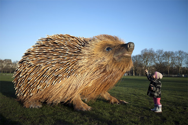 冬眠了兩個月,一隻巨型刺蝟甦醒了! 一個團隊的雕塑家花兩個月的時間,將2000根軟木釘、人造毛及椰子纖維編織打 ……