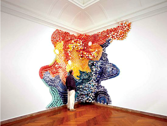 來自紐約的藝術家 Lisa Hoke 將各式紙包裝和塑膠在的牆壁上大量拼貼,用各色彩打造屬於自己的風格藝術。正 ……