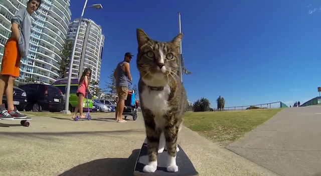 Robert Dollwet 與貓咪 Didga 看過會玩滑板的貓咪嗎?!澳大利亞黃金海岸的一個 ……