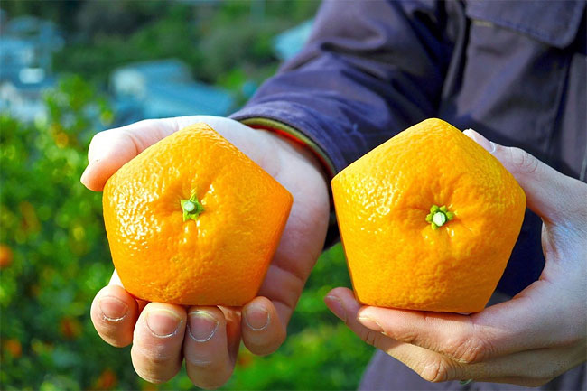 2014年1月15日在日本八幡濱市,愛媛縣,產出五邊型的伊予柑! 伊予柑(イヨカン),屬於 芸香科柑橘屬。 農 ……