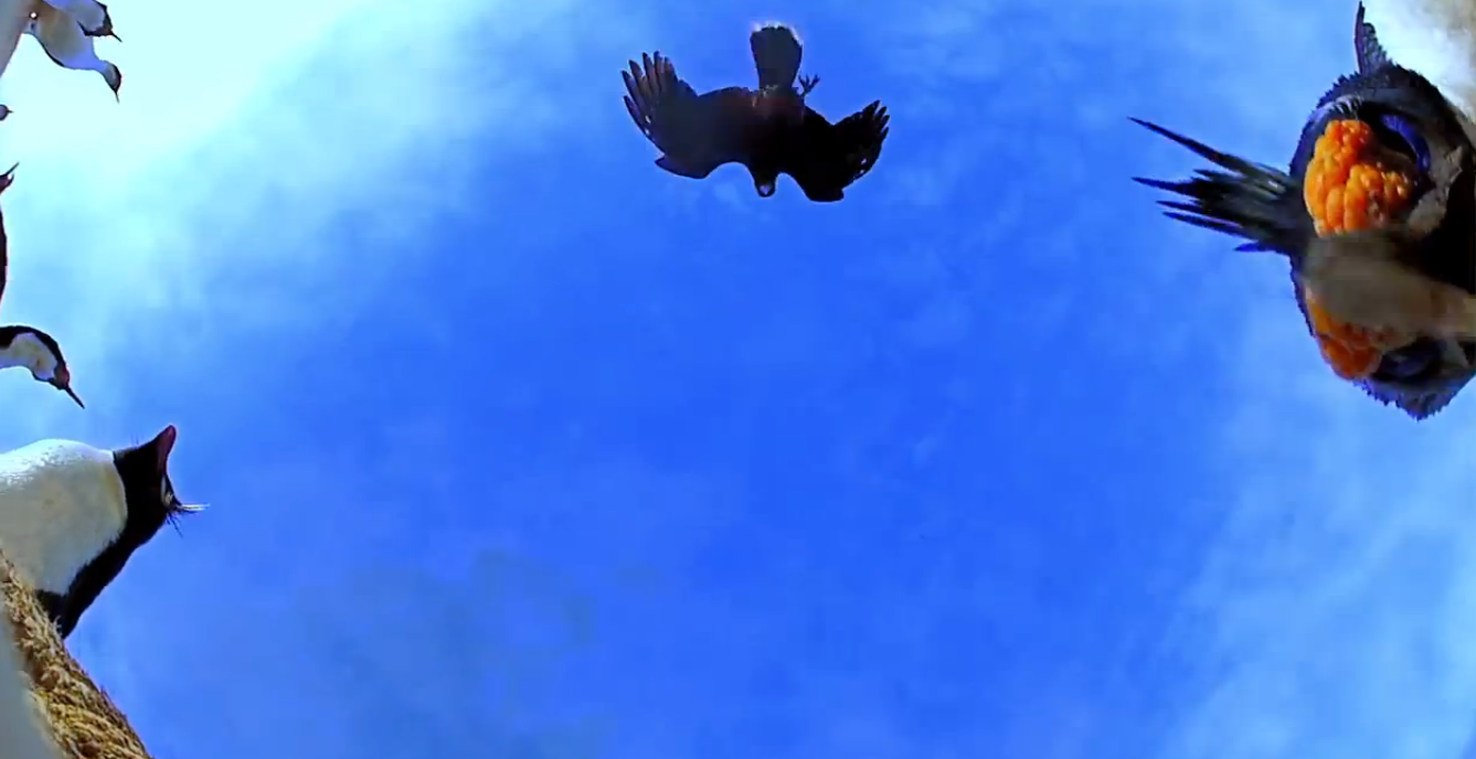 一個裝有攝影機的蛋,被小鳥們踢來踢去也不小心記錄到牠們可愛的模樣了~其實沒有很可愛啦,有點暴力的樣子。 一臉懷 ……