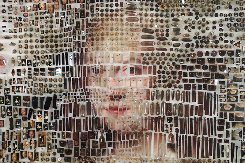 紐約藝術家 Michael Mapes (previously) 將數以千計的塑膠碎片、照片、指甲和昆蟲針拼湊 ……
